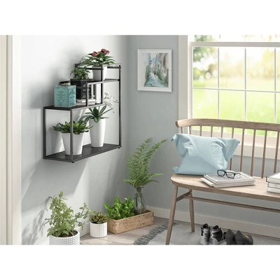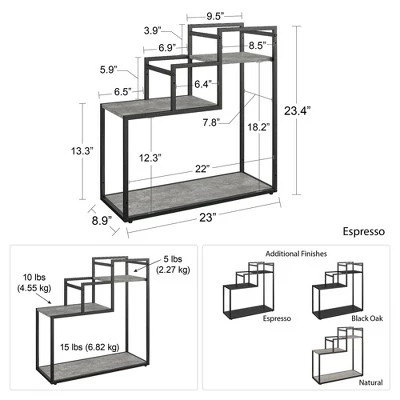 Add a little green to your space with the Novogratz Weston Plant Stand. The classic finish on the laminated particleboard shelves pairs with the powder-coated metal frame for a modern, industrial look. The 2 smaller shelves can hold individual potted plants while the larger lower shelf is ideal for wider pots or decorations. Assembled dimensions: 23.39โH x 23.03โW x 8.94โD.