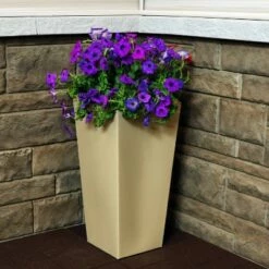 Use plants and greenery to accent your entry with the Meghan flower pot planter. The taller design makes this planter stand out from other planters due to its height and simplicity. It is constructed to resist cracking in cold temperatures with a linear low-density polyethylene (polyresin) material. Every planter features a hand painted UV-resistant finish, for a unique look that also provides protection. The planter is also lightweight and can easily be carried to the ideal location. The double-wall construction features a hollow space that can be filled with sand or gravel, so that the planter can be used in windy locations without blowing away.