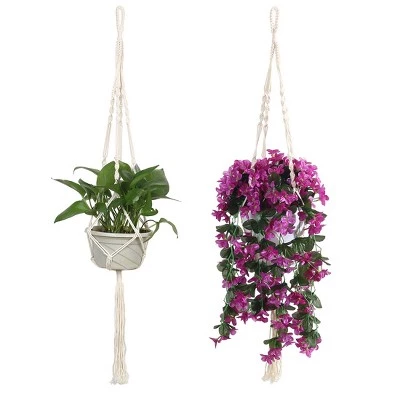 - Product Name: Unique Bargains Macrame Plant Hanger Flower Wall-mounted Rope Hanging Planters Beige 39.4 Inch 1 Pc