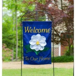 - Made of metal, this house flag arbor stand is safe for outdoor use.