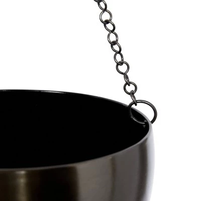 This set of hanging planters brings tranquility to your space by allowing you to fill the pots with plantsโhence it promotes wellness and creates an immediate feeling of relaxation. These decorative planters are sure to add bundles of charm to your home. Beautifully detailed, they feature round pots in metallic black finish and silver metal strings for easy hanging. These hanging planters are made out of iron with solid construction, offering durability. Jazz up modern and glam themed spaces using this set of charming accent pieces that are ideal for both indoor and outdoor use.