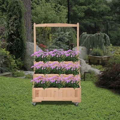 Want a beautiful place to play and display your flowers and garden? Outsunny’s elevated plant shelf with trellis can easily solve your problems. The herb garden has 3 large capacity flower boxes to hold a variety of plants and a trellis for climbing vines. 4 wheels on the bottom of the vegetable planter make it easy to move, suitable for your yard, garden, terrace, or balcony. Check out this garden boxes outdoor raised, and let your favorite leafy friends have their place to grow.