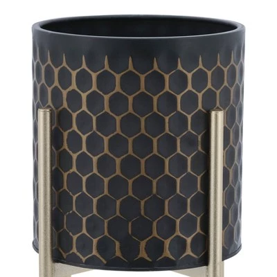 Set Of 2 Honeycomb Planters With Metal Stand. These Planters Are The Perfect Unique Decor Which Will Add Timeless Minimal Style To Your Home. The Honeycomb Pattern Makes For A Beautiful Piece Of Art Work. Beautiful Design To Add To Your Home.Sagebrook Home has been formed from a love of design, a commitment to service and a dedication to quality. They create and import fashion forward items in the most popular design styles. Backed with years of experience in the textile field, They are now providing a complete Home decor story. the combination of wall decor, furniture, lighting and Home accessories are all coordinated with textiles to provide a complete Home look. Sagebrook Home is committed to providing the best Home dรฉcor and accent pieces at value prices.