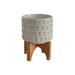 Best Pirce π Set of 2 11" Ceramic Planters On Wooden Stand Ivory – Sagebrook Home β