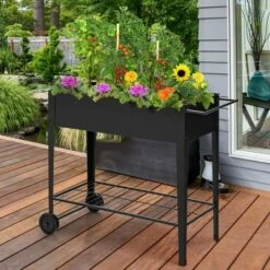 Outlet ๐งจ Costway Raised Garden Bed Elevated Planter Box on Wheels Steel Planter w/Shelf ๐