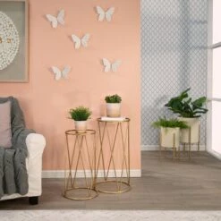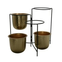 Brand new ๐ 20″ Metal ๐จ Hammered Planter Trio with Stand – Sagebrook Home Gold ๐ฏ
