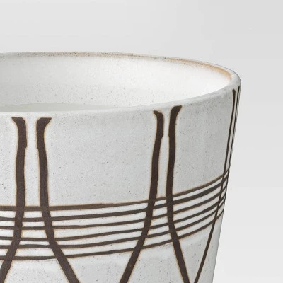 Add an artisanal vibe to your outdoor decor with this Linen Stoneware Outdoor Planter from Opalhouse™. This round stoneware planter makes a great addition to your decor. It showcases a hand-painted geometrical line look on a white base, along with a light speckled effect for subtle flair. The decorative planter is perfect for housing succulents, flowers and other greenery to bring a fresh touch to your space. Display it on any table or shelf in your garden, patio or balcony area to enhance the aesthetic of your home.