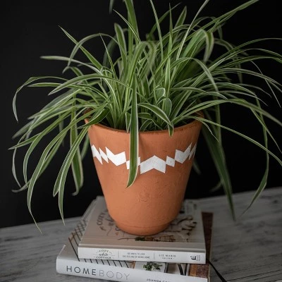 Spruce up your garden space with this Southwest style terracotta pot exclusively from Foreside Home & Garden. This charming, tapered planter is hand thrown and accented by a white geometric design that is hand painted. Its large size offers a home for your greenery to pop and be paired with a transitional, neutral planter from season to season. Handcrafted by artisans in India, each piece is unique.