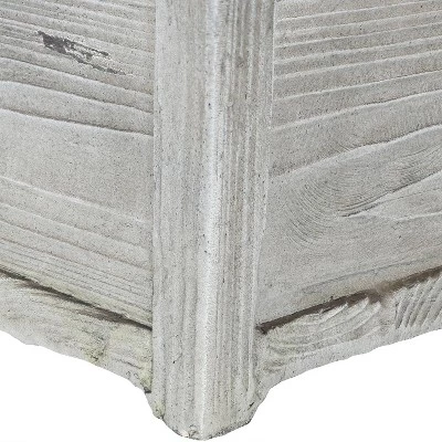 This faux wood design planter will add instant charm to any outdoor space while providing a place to display favorite plants, flowers, herbs, or vegetables. The planters feature a drainage hole on the bottom to ensure plants remain healthy and soil has proper drainage. The light gray wood tone finish gives the planters a modern look while ensuring they will complement most decor schemes. The fiber clay construction is designed with style and function in mind. Fiber clay is made from fiberglass, clay and a composite to make the pots as durable as fiber stone pots but lighter in weight and easier to move.