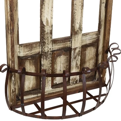 Capture the majesty and grandeur of a cathedral window with this elegant garden wood planter decor piece. Beautifully carved from wood for a weathered look and featuring a stylish metal railing, this planter holder provides the perfect place to display a flower pot. It features a striking pointed arch design and three slender window openings. It can be used either indoors or outdoors making it a lovely addition for the patio, front porch, living room, yard or sunroom.