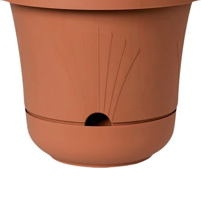 Keeping your greenery looking fresh is easy with the Lucca Self-Watering Hanging Basket from Bloem. This round hanging planter includes a built-in tray to retain water and a small port for easy watering with a hose or a narrow-spout watering can. Hang around your porch, patio or deck for a pop of color in your outdoor space.