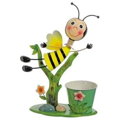 Titivating your garden takes too much effort unless you pick the outdoor planter. It makes your exterior decoration easy with its charming details. Display those beautiful faux flowers or fresh flowers in this enticing planter.Product Features:Green and yellow bumblebee spring garden planterBumblebee is flying over flowers and the planterBumblebee’s neck is a spring which allows it’s head to bobble aroundWhimsical design planter that would make any garden, patio or porch cheerfulRecommended for both indoor and outdoor useDimensions: 17″H x 13″W x 6″DMaterial(s): tinNote: planter does not have drainage holes