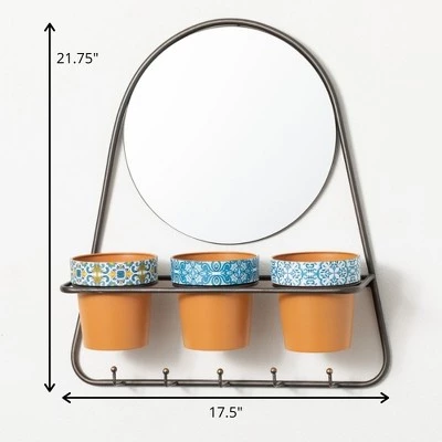 - Metal framed mirror with each pot featuring a unique patterned exterior