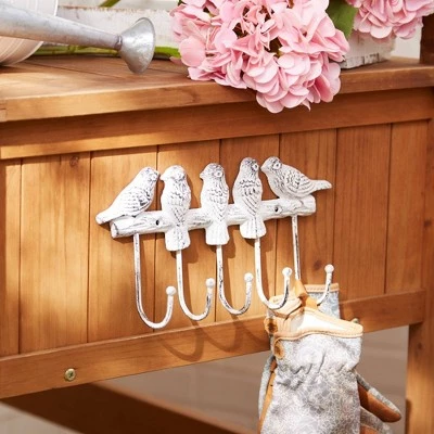 Hang keys, garden tools, gloves, jackets and sweaters on these durable off-white cast iron birds wall hooks. Perfect for both indoors and outdoors, this stand will look good anywhere in your home from a statement porch piece, sunroom storage, garden enhancement or patio accent. Also the perfect housewarming gift idea for friends and family!