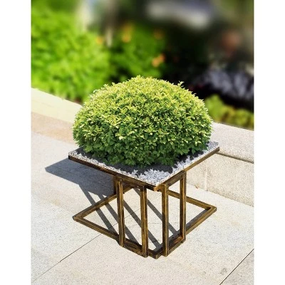 Elevate your garden arrangement with this 14.5″H Square w/ Marble Granite Plant Stand. Made of sturdy cast metal, this stand can weather almost any climate and look good doing it. Wonderfully crafted modernity appeal granite top and metal plant stand that is perfect for any kitchen, nook, or patio in the home. All the metal is finished in a rich powder coated black and gold which gives the product a distinctive look. The nicely metal frame and granite marble adds beauty and modernism of this unit. The Granite Marble top platform is perfect for holding any of your favorite larger plants. The straight legs at the bottom adds to the simplicity of this unit.