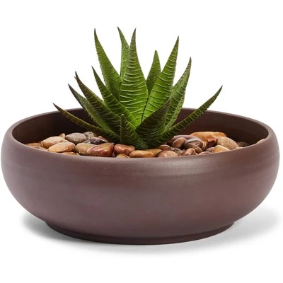 Item DescriptionInstantly elevate your home or garden decor with this dark brown ceramic pot planter that features a sleek minimal design. If you tend to overwater your plants, then ceramic planters are perfect for you! The clay construction protects against overwatering and help promote root growth, resulting in healthier plants over time. Give the cute ceramic planter to a coworker, friend, or family member at an upcoming housewarming or birthday celebration. Adults and children of all ages will enjoy watching their houseplants, flowers, and succulents flourish in this decorative ceramic flower pot. Juvale was born from the belief that the happiest way to live is to keep things uncomplicated and easy. Juvale products are constructed from quality materials, designed with modern aesthetics for the needs of home today.Product names are trademark of listed manufacturer or other owners, and are not trademarks of eForCity Corp. The manufacturer does not necessarily endorse use of these products.