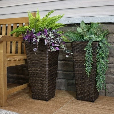 - Sunnydaze Tall Square Polyrattan Planters – Set of 2
